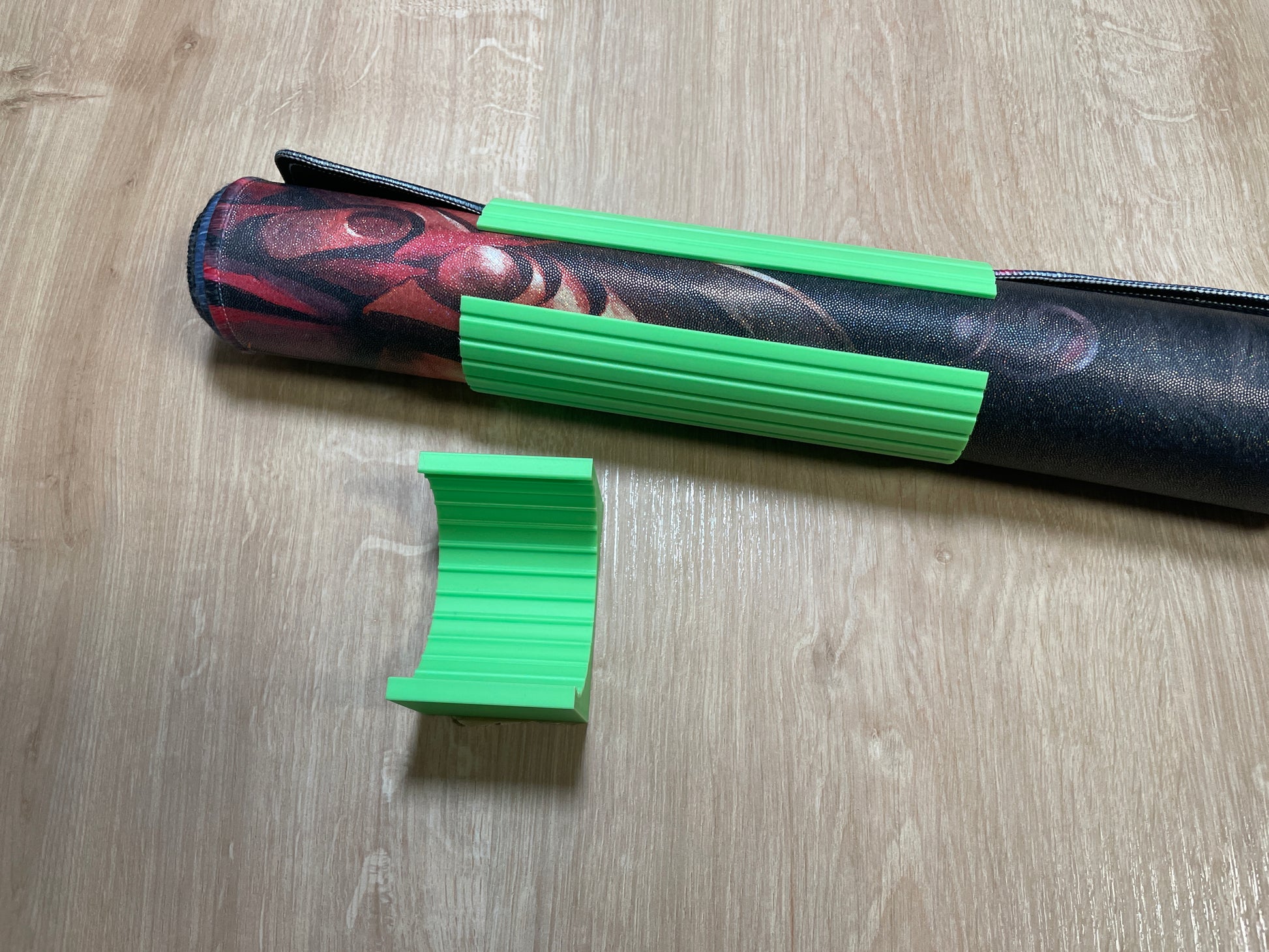 Besonderes Extra: Der Halter lässt sich samt eingerollter Matte einfach von der Wand nehmen und im Rucksack verstauen.– ideal für Spielabende und Turniere!